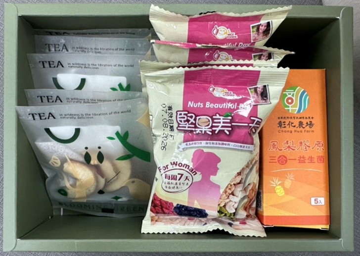 ◉堅果小姐*4 ◉四季榮好花果茶*5 ◉鳳梨膠原三合一益生菌-5入*1